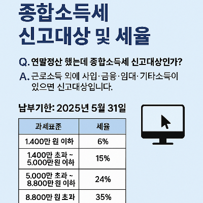 - 종합소득세 납부기한: 2025년 5월 31일