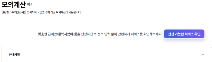- 복지로에서 모의계산 → 온라인 신청 가능
